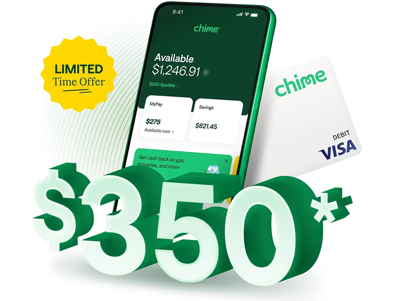 Get up to $350 with a new Chime Checking Account.