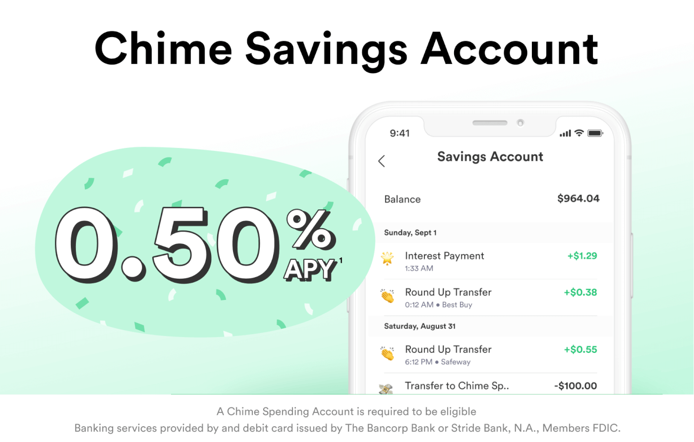 Chime® is a financial technology company, not a bank. Banking services provided by The Bancorp Bank, N.A. or Stride Bank, N.A., Members FDIC. Credit Builder card issued by The Bancorp Bank, N.A. or Stride Bank, N.A.