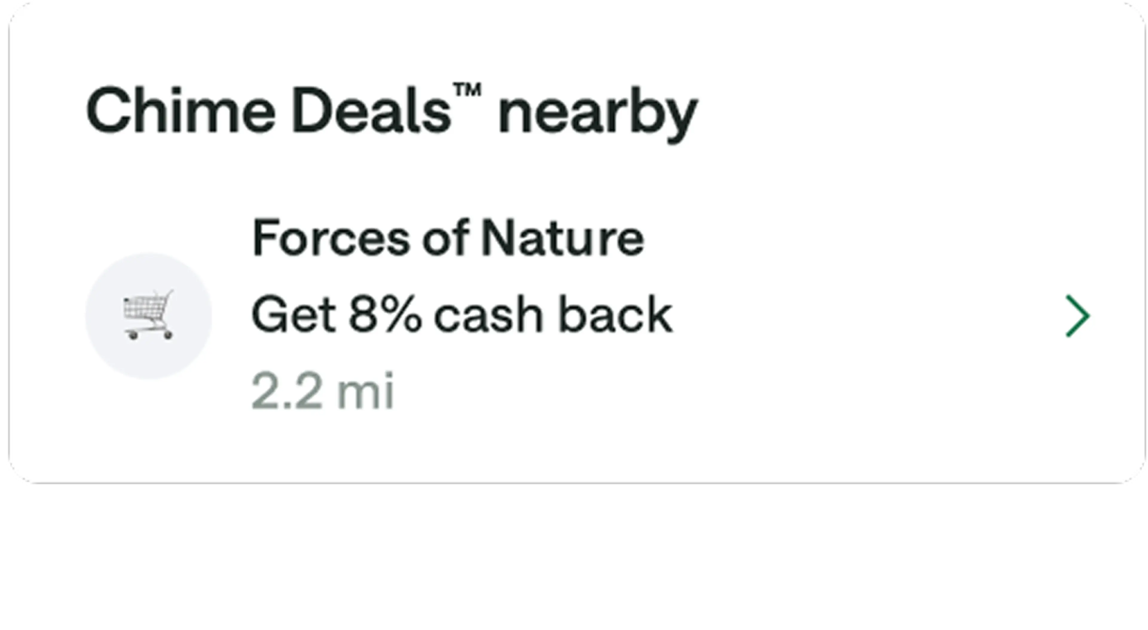 Chime Deals® is a fee-free feature for Chime members to get cash back on everyday purchases through in-app deals. Browse the app for retailers you’re planning to visit and choose the cash back deals you want.2 You could get cash back on everyday purchases like gas, groceries, and restaurants nearby.