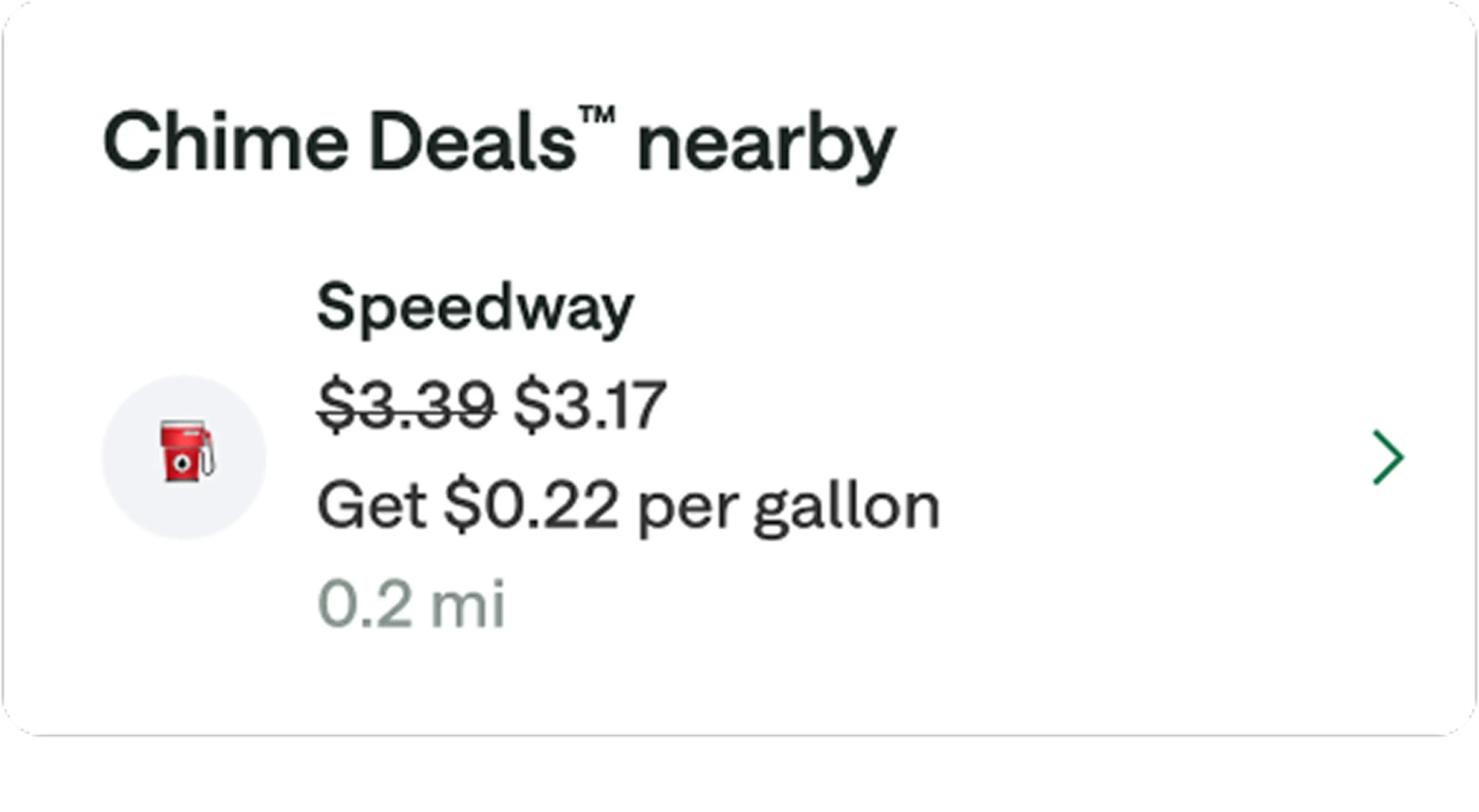On your way to the pump? Search the Chime app to find Chime cash back deals on fuel near you. You can shave money off each gallon at select gas stations – a surefire way to combat rising gas prices.