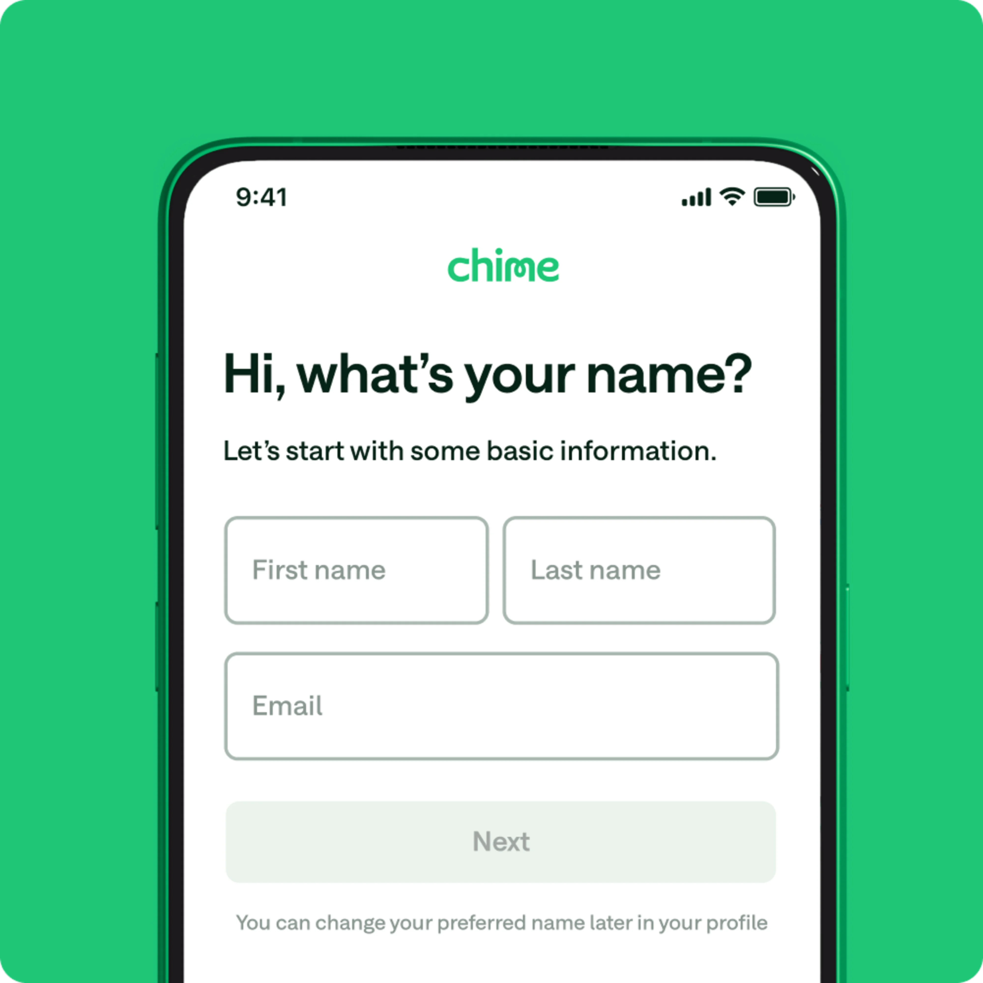 Two minutes— that’s all you need to set up your Chime account. The best part? It’s completely free to sign up. Since time is money, we make the steps easy, quick, and secure.