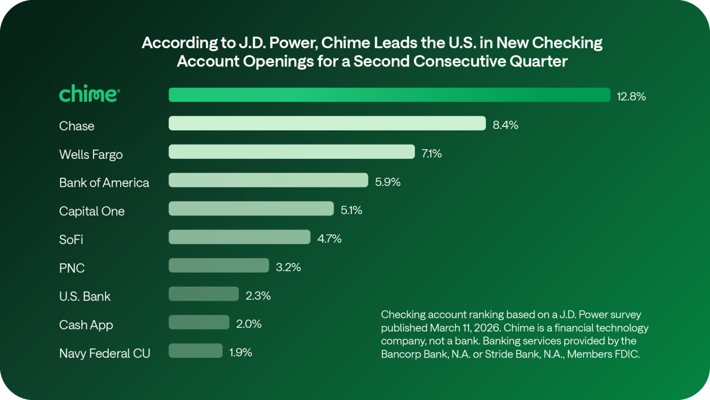 That’s showing up in the data: 97% of our members say we have unlocked their financial progress. And for two consecutive quarters, J.D. Power found that Chime opened more new checking accounts than every bank and fintech in America.1
