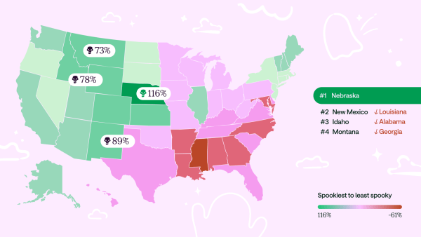 - Where Halloween spirit runs highest: Nebraska ranked #1, spending 116% above the national average — followed by New Mexico (+89%), Idaho (+78%), and Montana (+73%). By contrast, Southern states like Louisiana (-39%), Alabama (-38%), and Georgia (-37%) spent the least, showing how regional traditions shape celebrations.