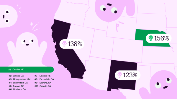 - Spookiest Cities: Omaha, NE, claims the title of spookiest Halloween city, with Chime members there spending 156% more than the national average on Halloween. Salinas, CA (138%) and Albuquerque, NM (123%) follow close behind.