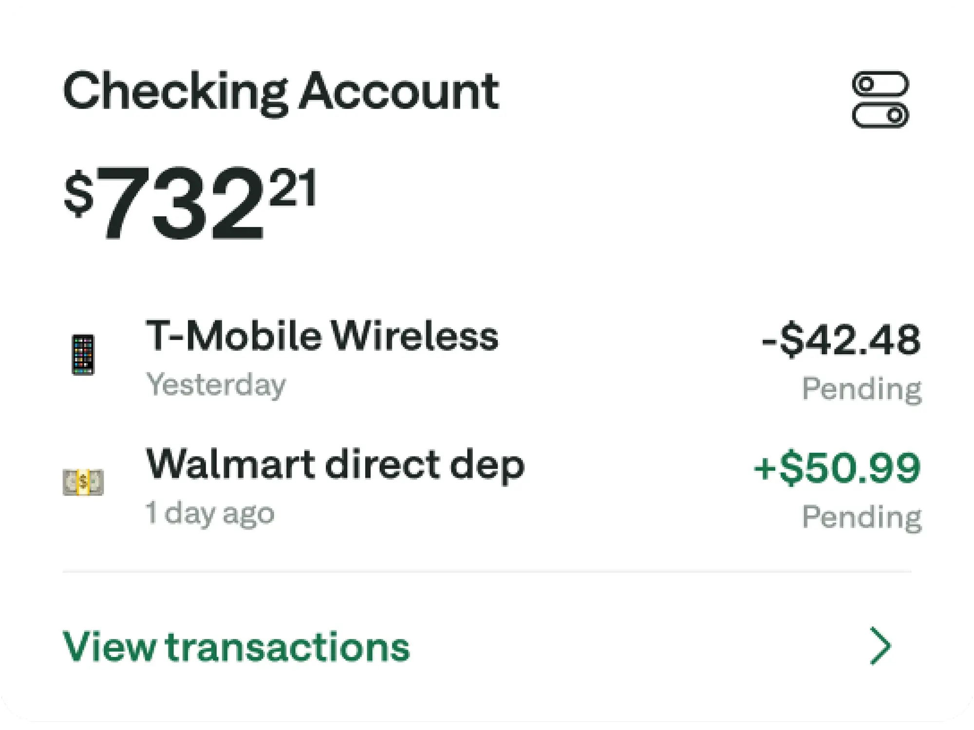 Take out your hard-earned cash. Conveniently withdraw money and count on SpotMe to overdraw up to $2003 when you need it.