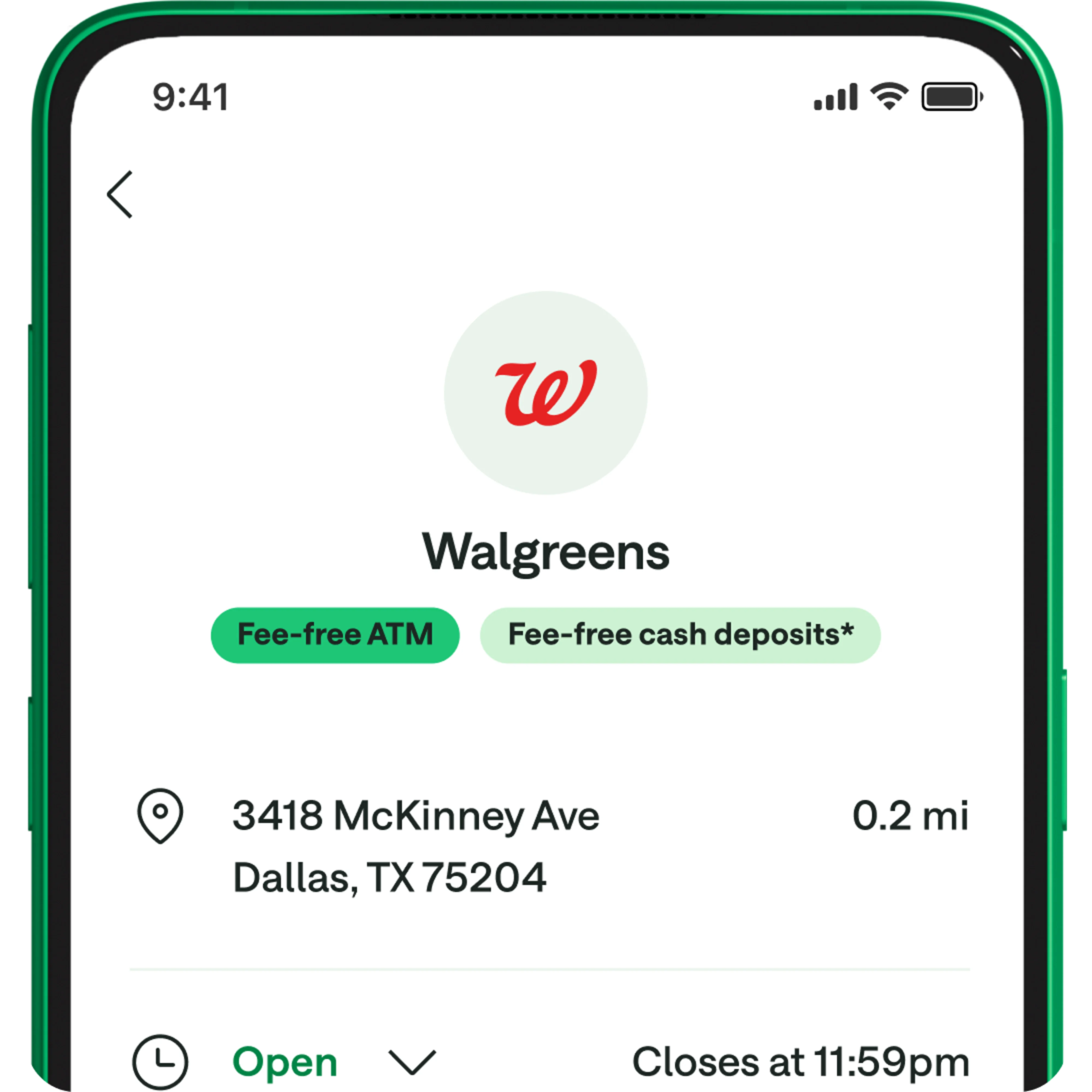Access your money when you need it with fee-free ATMs1 at stores like Walgreens®, 7-Eleven®, Target®, Circle K, and CVS Pharmacy®.