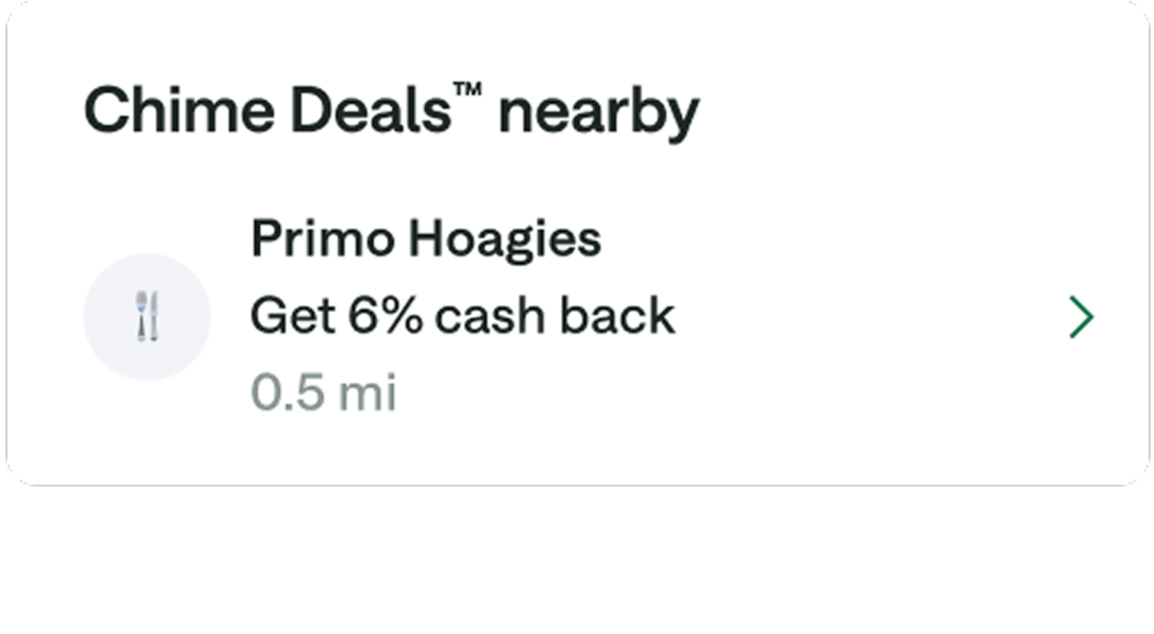 Chime Deals® is a fee-free feature for Chime members to get cash back on everyday purchases through in-app deals. Browse the app for retailers you’re planning to visit and choose the cash back deals you want.2 You could get cash back on everyday purchases like gas, groceries, and restaurants nearby.